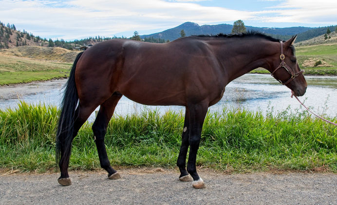 His oldest foals are 2 year olds as of 2025. The first of them will be hitting the track later this year. Snickers has been passing on bone, and overall size to his foals, along with a great attitude and work ethic.